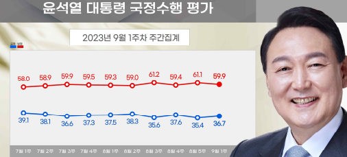 (2023년 9월 6일~9월 12일, 5000명 이상, 신뢰 수준±1.0% p)±1.0% p))