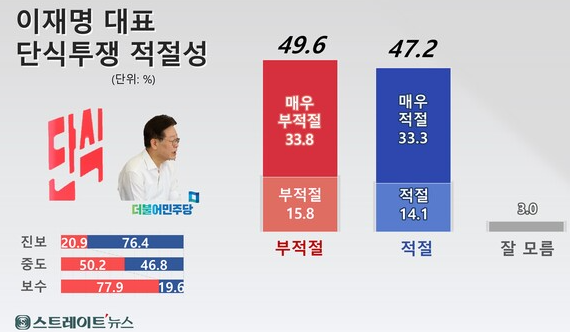 4. 이재명 대표 단식투쟁 적절성 : 부적절 49.6^, 적절 47.2%