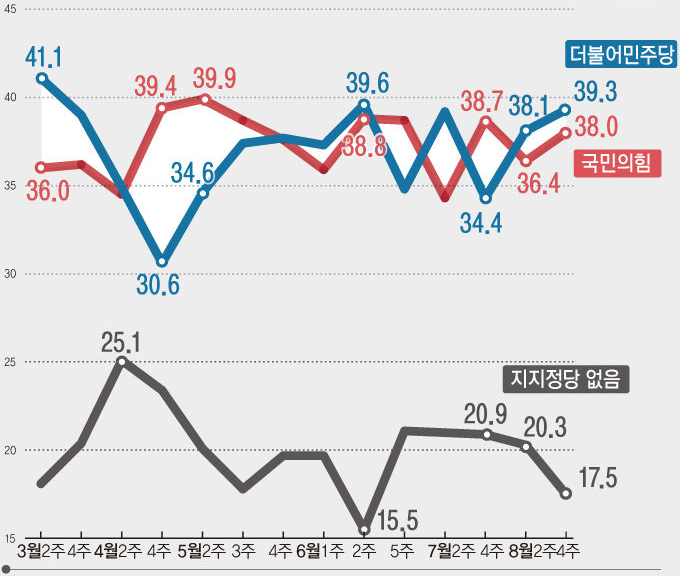 2023.08.28 - [정치] - <8월 말 9월 초 여론조사집계> 윤 대통령 지지율 및 정당 지지율 등
