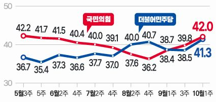 <10월 1주 여론조사집계 : 9월 29일~10월 8일> 윤대통령 지지율 및 정당 지지율 등