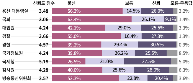 * 0~4점까지 ‘불신 구간’, 5점은 ‘보통’, 6~10점까지는 ‘신뢰 구간’