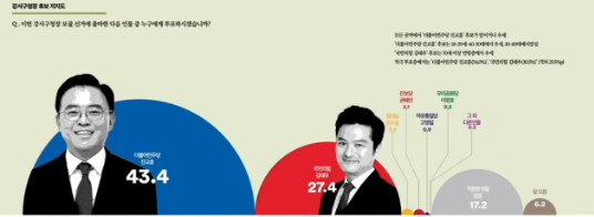 8. 강서구청장 여론조사 : 진교훈 43.4%, 김태우 27.4%