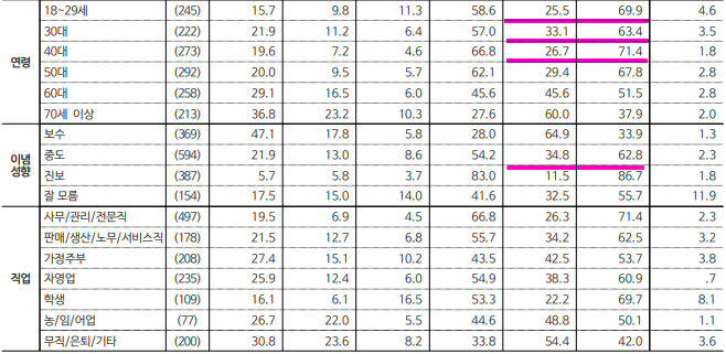 ▣ 한국갤럽 여론조사(의뢰 : 시사IN)