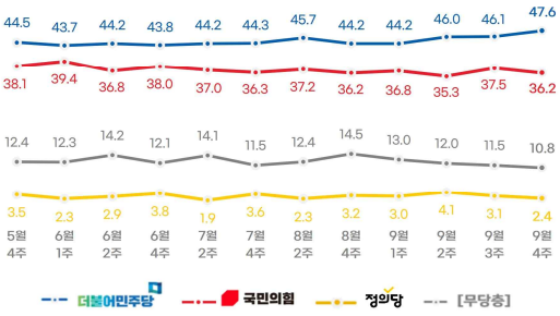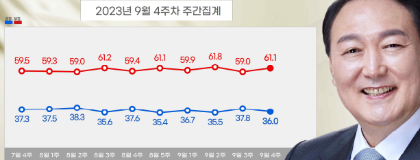 2023.09.25 - [분류 전체 보기] - <9월 4주 여론조사집계> 윤대통령 지지율 및 정당 지지율 등