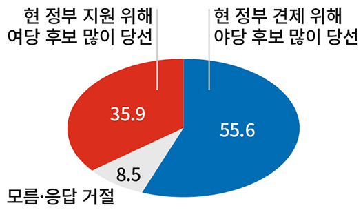 2. 내년 총선 전망 : 현 정부 견제 55.6%, 현 정부 지원 35.9%