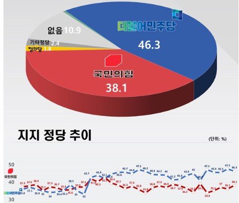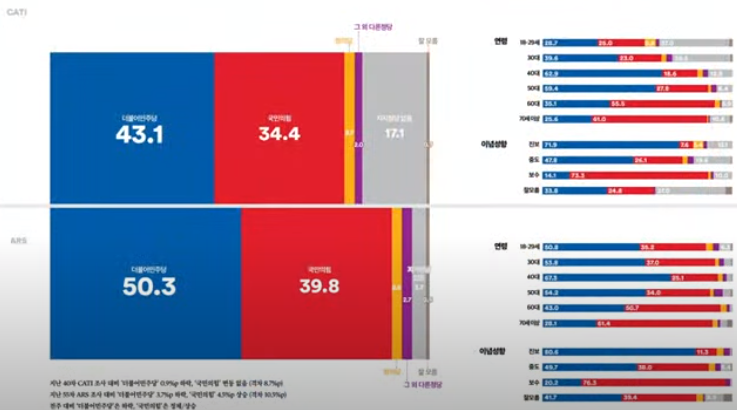 2. 정당지지율 : 민주당 50.3%, 국민의힘 39.8%(ARS)