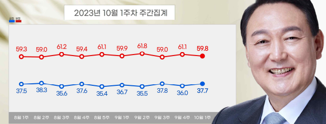 1. 윤 대통령 국정운영평가 : 긍정 37.7%, 부정 59.8%