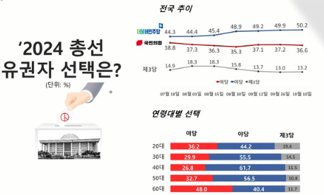4. 내년 총선지지 : 민주 50.2%, 국힘 36.6%