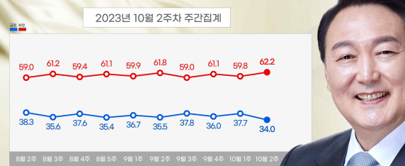 2023.10.09 - [분류 전체 보기] - <10월 2주 여론조사집계> 윤대통령 지지율 및 정당 지지율 등