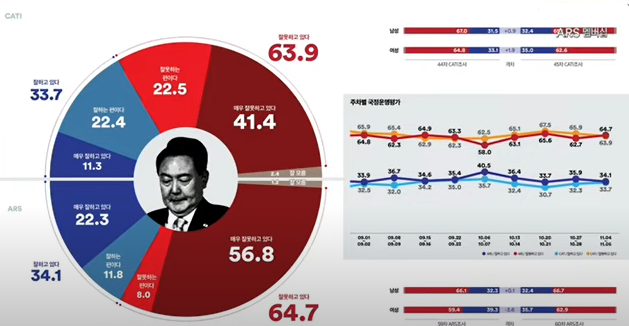 1. 윤 대통령 국정운영평가 : 부정 64.7%, 긍정 34.1%(ARS)