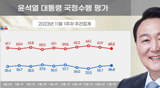 1. 윤 대통령 국정운영평가 : 긍정 36.8%, 부정 60.2%