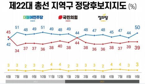 2023.09.25 - [정치] - <9월 4주 여론조사집계>윤대통령 지지율 및 정당 지지율 등