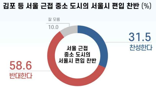 3. 김포 등 서울 근접 중소도시의 서울시 편입? 반대한다 58.6%, 찬성한다 31.5%
