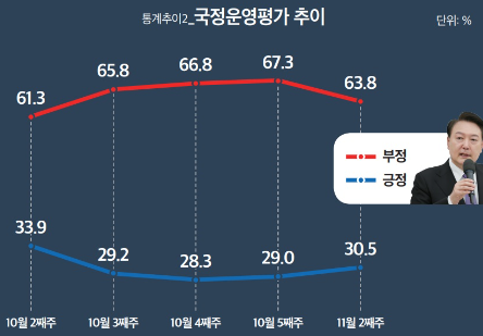 1. 윤대통령 국정운영평가 : 긍정 30.5%, 부정 63.8%