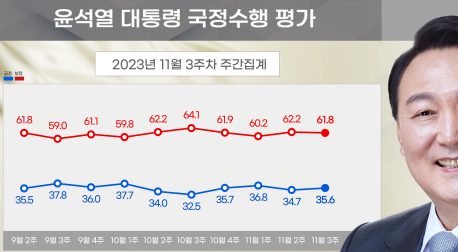 1. 윤 대통령 국정운영평가 : 긍정 35.6%, 부정 61.8%