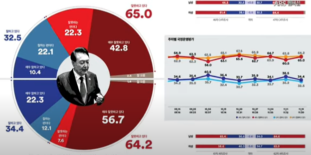 (2023년 11월20~22일, 1000명, 무선전화 자동응답 방식, 신뢰 수준에 ±3.1% p)