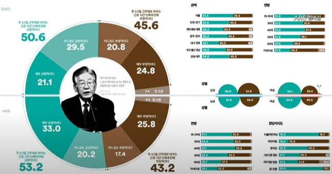 4. 야당의 현 5일제 근무제를 4.5일제 근로시간 단축 추진? 긍정적 53.2%, 부정적 43.2%