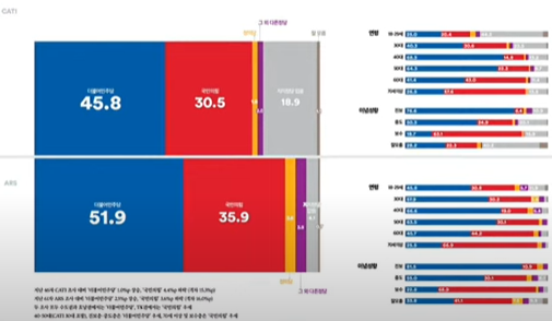 2. 정당지지율 : 민주당 51.9%, 국민의힘 35.9 %(ARS)