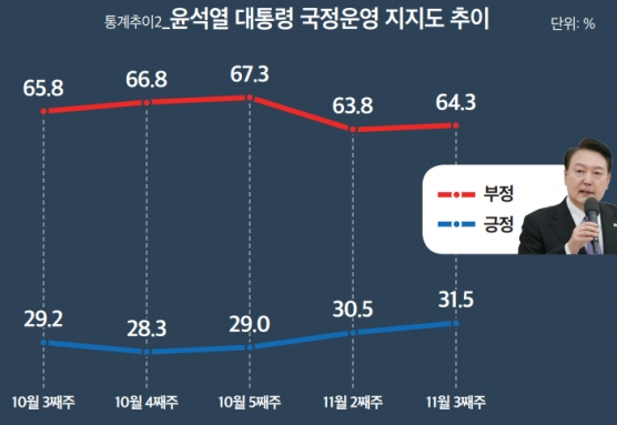 1. 윤대통령 국정운영평가 : 긍정 31.5%, 부정 64.3%