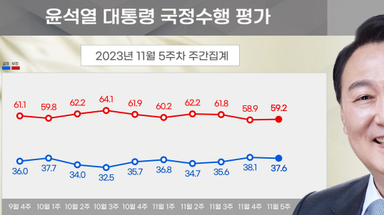 1. 윤 대통령 국정운영평가 : 긍정 37.6%, 부정 59.2%