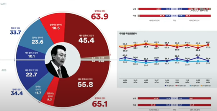 1. 윤 대통령 국정운영평가 : 부정 65.1%, 긍정 34.4%(ARS)
