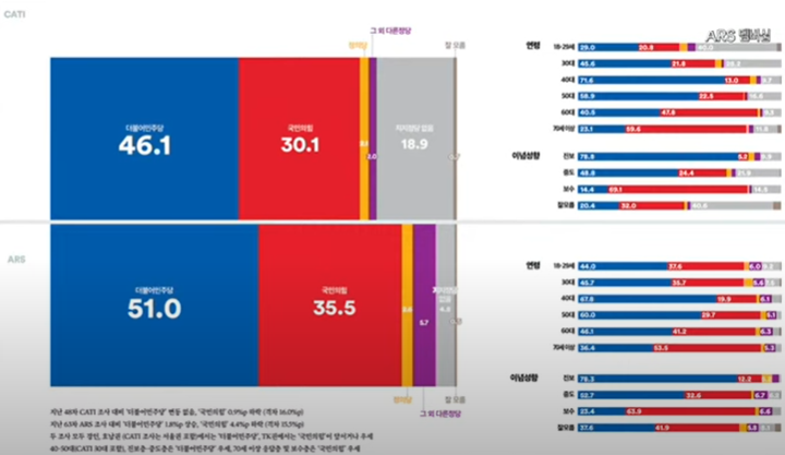 2. 정당지지율 : 민주당 51.0%, 국민의힘 35.5 %(ARS)