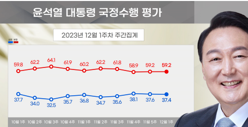 1. 윤 대통령 국정운영평가 : 긍정 37.4%, 부정 59.2%