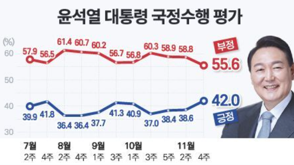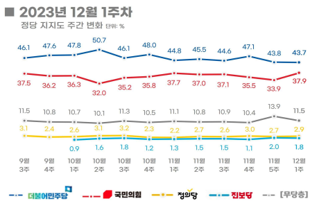 2023.12.18 - [정치] - <12월 3주 여론조사> 윤대통령 지지율 및 정당 지지율 등