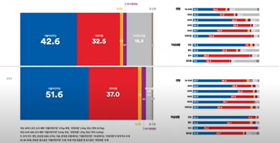2. 정당지지율 : 민주당 51.6%, 국민의힘 37.0 %(ARS)