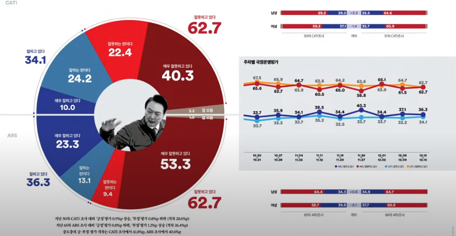 <12월 3주 여론조사 : 12월 15일~24일> 윤대통령 지지율 및 정당 지지율 등