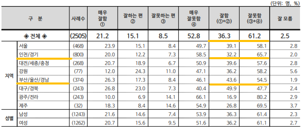 1. 윤 대통령 국정운영평가 : 긍정 36.3%, 부정 61.2%
