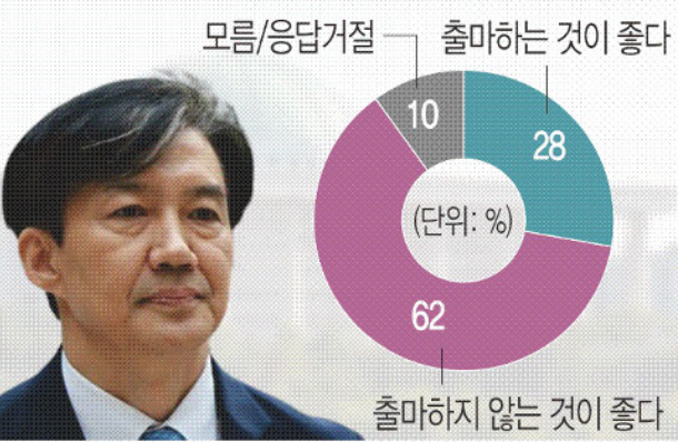 3. 조국 총선 출마 견해? 출마하지 않는 것이 좋다 62%, 출마하는 것이 좋다 28%