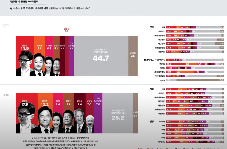 2. 국힘 비대위원장 누가 좋을지 여당 지지층 질의? 한동훈 25%, 잘모르겠다 49%,, 원희룡 12%