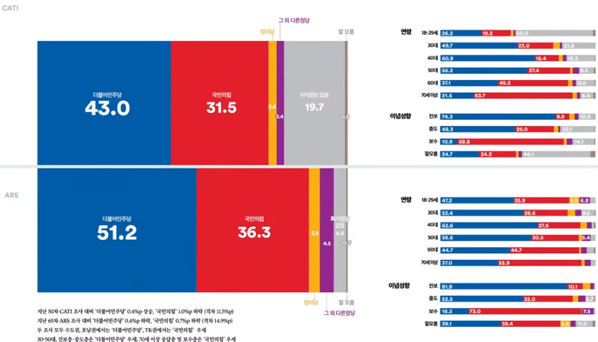 2. 정당지지율 : 민주당 51.2%, 국민의힘 36.3 %(ARS)