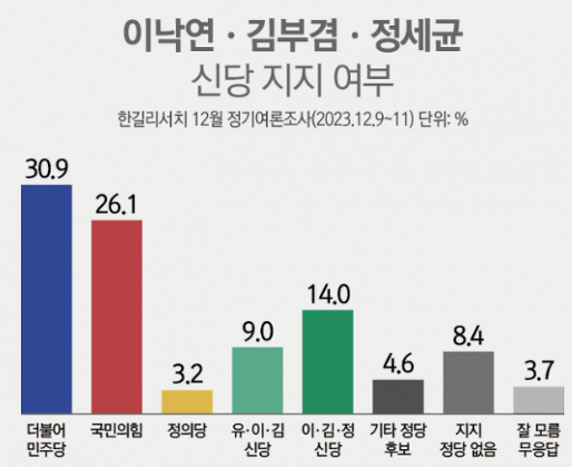 (2023년 12월 14일~15일, 1002명, 무선 97%, 유선 3%, 신뢰 수준에 ±3.1% p)
