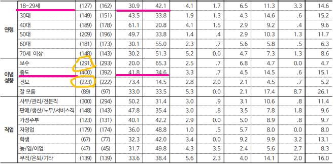 참고사항 : 보수 과표집 → 보수 291, 진보 223