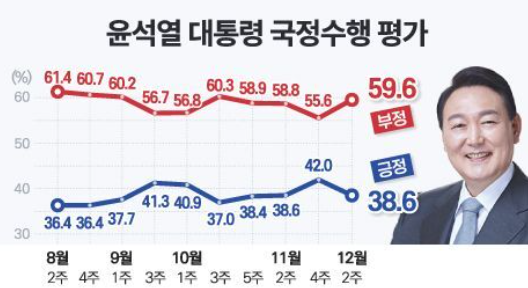 (2023년 12월 18일~ 22일, 2508명, 무선 97%, 유선 3%, 신뢰 수준에 ±2.0% p)