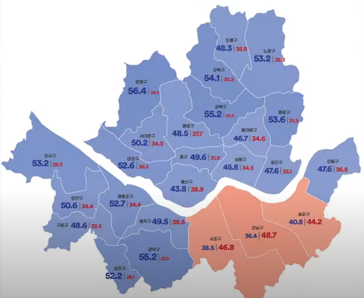 4. 서울 지역 민주당과 국힘당의 대결 구도(이전 조사)