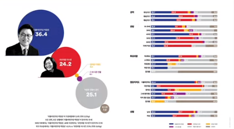 PK : 응답자 40%가 국힘을, 29%가 민주당을, 강원·제주에서는 40%가 민주당을, 29%가 국민의힘을 지지