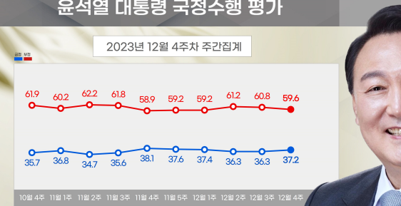 1. 윤 대통령 국정운영평가 : 긍정 37.2%, 부정 59.6%