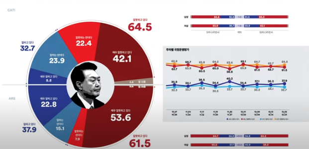 1. 윤 대통령 국정운영평가 : 부정 61.5%, 긍정 37.9%(ARS)