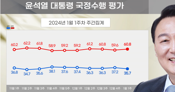 1. 윤 대통령 국정운영평가 : 긍정 35.2%, 부정 60.8%