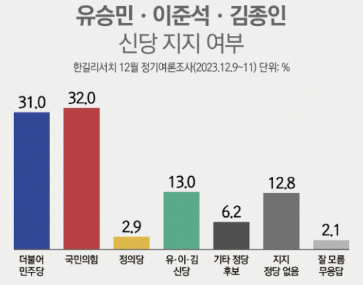 (2023년 12월 18~20일, 1002명, 무선전화 자동응답 방식, 신뢰 수준에 ±3.1% p)