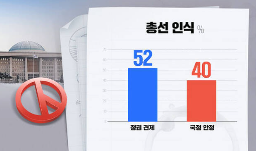 1. 총선에 대한 입장? 정권 견제를 위해 야당을 뽑겠다 52%, 국정안정을 위해 여당을 뽑겠다40%