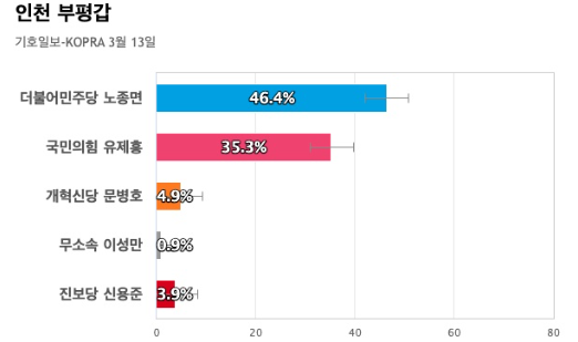 (3월 11~12일, 해당선거구 만 18세 이상 남녀 500명 , 무선 ARS, 표본오차 95% 신뢰수준에 ±4.4%)