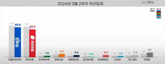 2024.03.11 - [정치] - <3월 2주차 여론조사> 윤대통령 지지율 및 정당 지지율 등