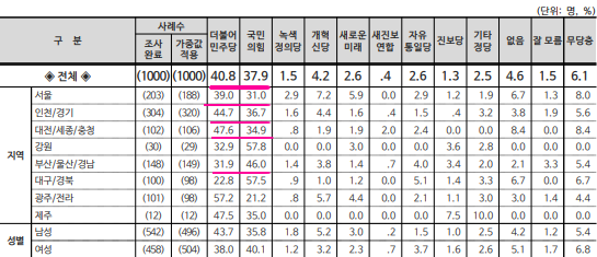 2. 정당지지도 : 민주당 37.9%, 국힘 40.8%