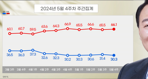 1. 윤 대통령 국정운영평가 : 긍정 30.3%, 부정 66.1%