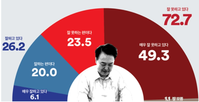 1. 윤 대통령 국정운영평가 : 부정 72.7%, 긍정 26.2%(CATI)