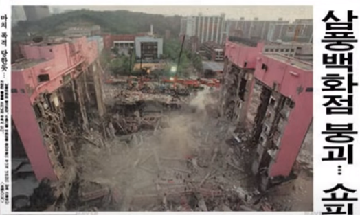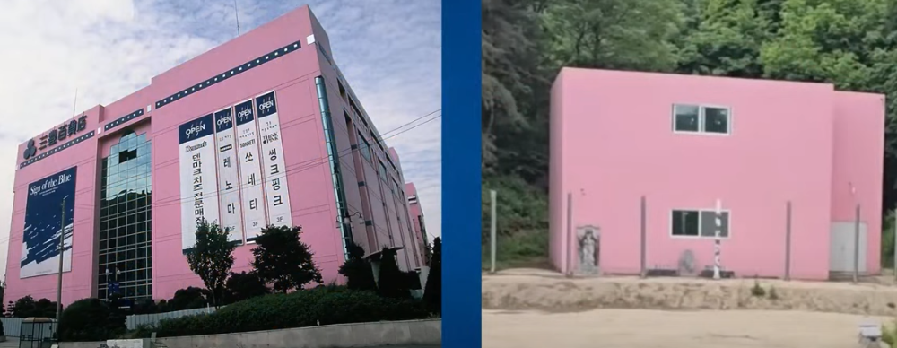 그런데, 이 무너져 수많은 희생자가 났던 삼풍백화점의 분홍색위에 현재 김건희가 살고 있는 아크로비스타가 세워져 있다. 선산근처의 건물과 흡사한 색상이다.